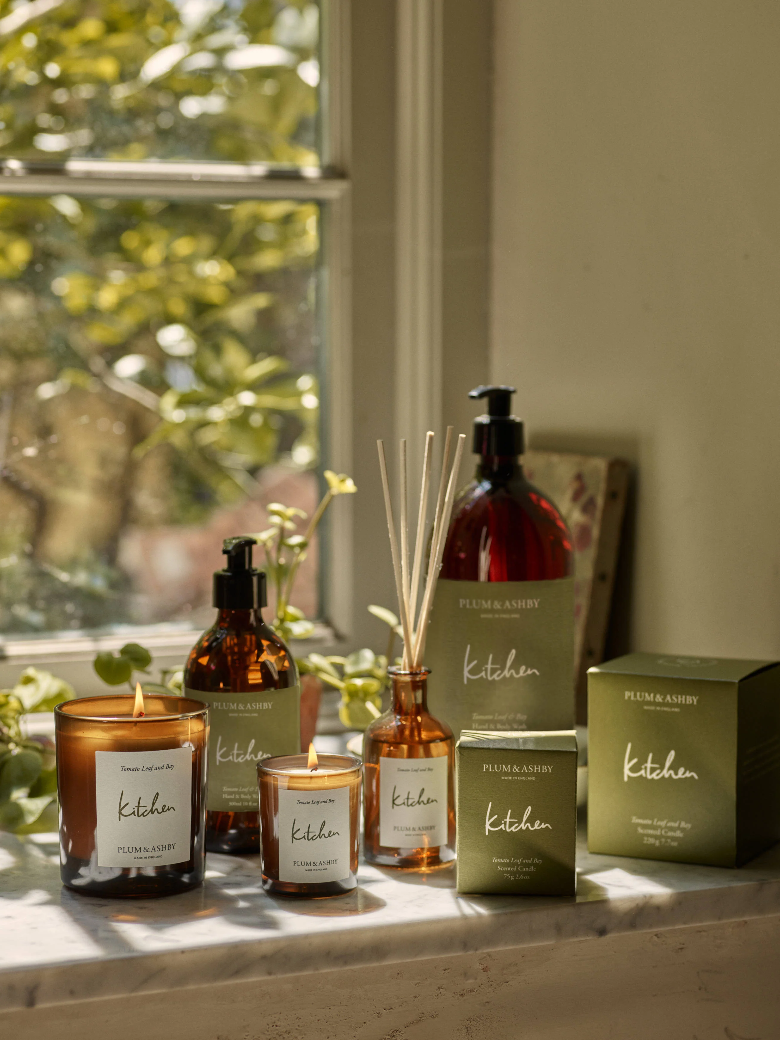 Designed to bring effortless, long-lasting fragrance to the kitchen throughout the day. Welcome guests into a space bursting with the life of the greenhouse - Tomato Leaf & Bay is a scent to cleanse minds and build appetites, a herbal freshness that glistens with the clarity of freshly washed leaves.
